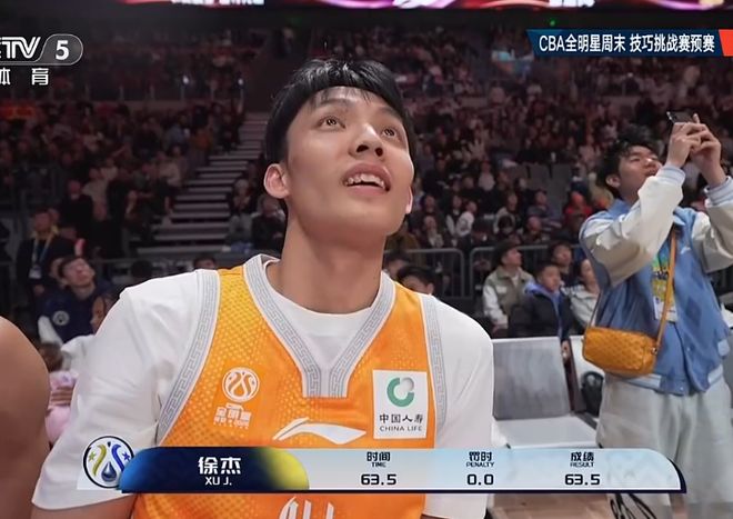 第2位出場的是衛(wèi)冕冠軍徐杰,他在開局階段表現(xiàn)尚可,隨后在底角三分連續(xù)三分命中,但節(jié)奏偏慢,導致最終用時63.5秒。