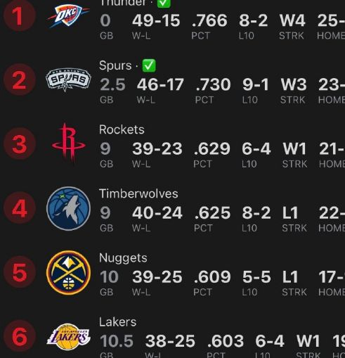5連勝的森林狼今天輸給魔術(shù)后,西部第3體驗(yàn)卡到期,40勝24負(fù)掉到西部第4,火箭39勝23負(fù),以勝率優(yōu)優(yōu)勢(shì)升到西部第3。