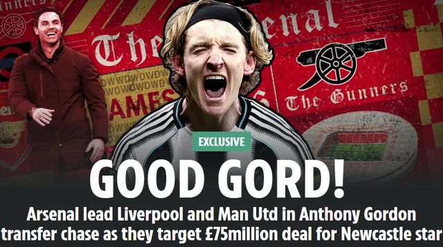 25歲的戈登,成為眾多豪門追逐的目標(biāo)。2月27日,《太陽(yáng)報(bào)》透露,阿森納、曼聯(lián)、利物浦3大豪門,同時(shí)盯上戈登。紐卡給戈登的定價(jià)接近1億英鎊,這超過阿森納的報(bào)價(jià)(7500-8000萬(wàn)英鎊)。